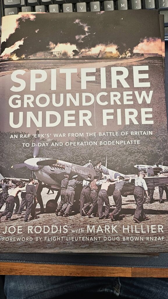 And he talks about his close connection to the late RAF groundcrew veteran Joe Roddis, who served on No. 485 (NZ) Squadron through that unit’s whole existence. No. 485 (NZ) Squadron’s time based at Westhampnett is also detailed, and also a little history of other squadrons based there and at the nearby RAF Tangmere, which Westhampnett was a satellite airfield to.
