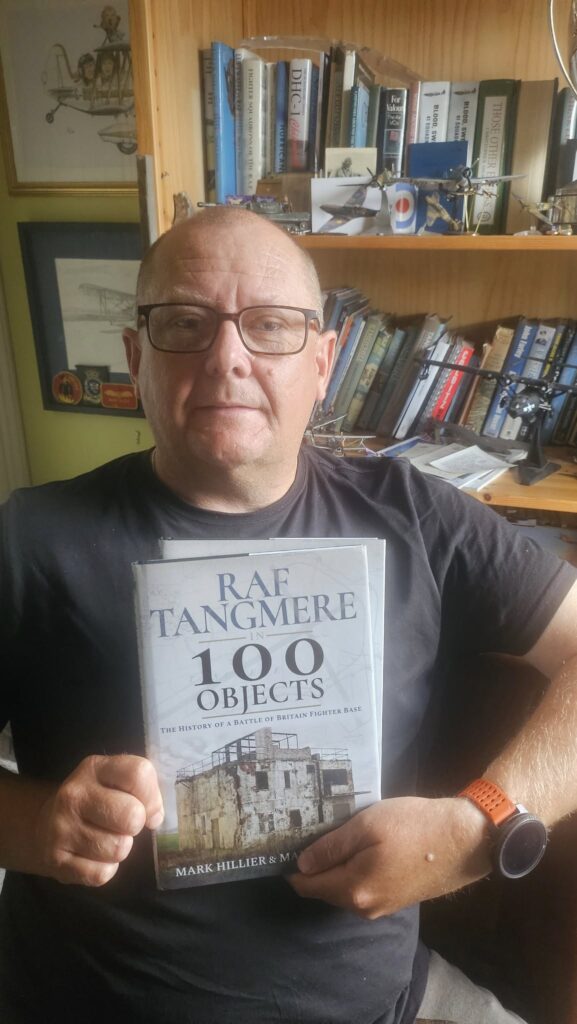Above Left: The late Joe Roddis. Centre: The book by Joe and Mark. Right: Mark with his RAF Tangmere 100 Objects book.