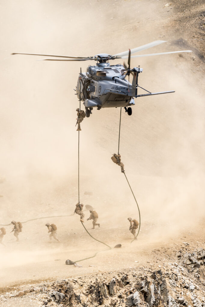 NZDF personnel from the Royal New Zealand Navy, NZ Army and Royal New Zealand Air Force take part in Exercise Talisman Sabre (TS23) across Australia. TS23 is a bilateral, biennial Australian hosted and USA supported combined exercise focused on the planning and conduct of a high end, mid-intensity warfighting scenario. The exercise is designed to improve combat readiness, exercise war-fighting skills and systems, whilst advancing combined staff and force interoperability.The New Zealand Defence Force (NZDF) and its international partners conduct a military assault against a ‘Becaran’ ‘highland militia’ stronghold on the Rainbow Ski-field near St Arnaud in the Tasman district during SK15. The assault was spear-headed by NZ infantry ‘fast-roped’ by Royal New Zealand Air Force (RNZAF) NH-90 helicopters to take the high ground sorrounding the ski-field, and by a combined Australian-New Zealand ANZAC Ready Reaction Force (RRF), utilising Australian Bushmaster Protected Mobility Vehicles, which cleared and secured the rebel base at the ski-field