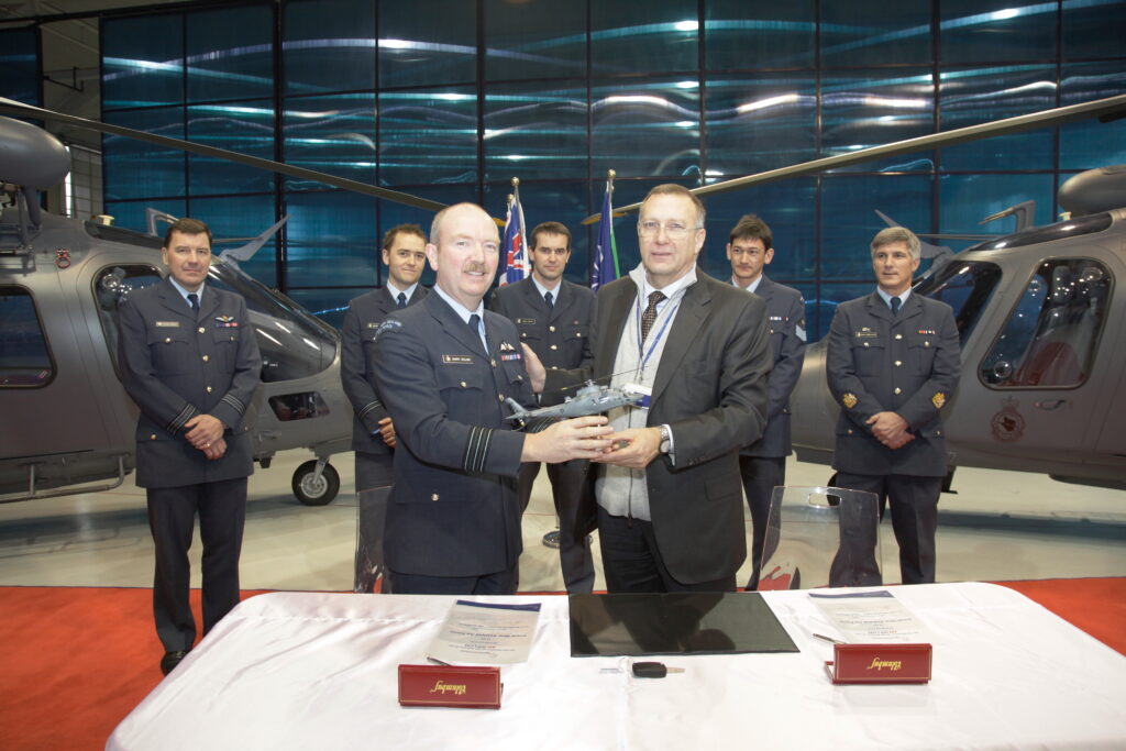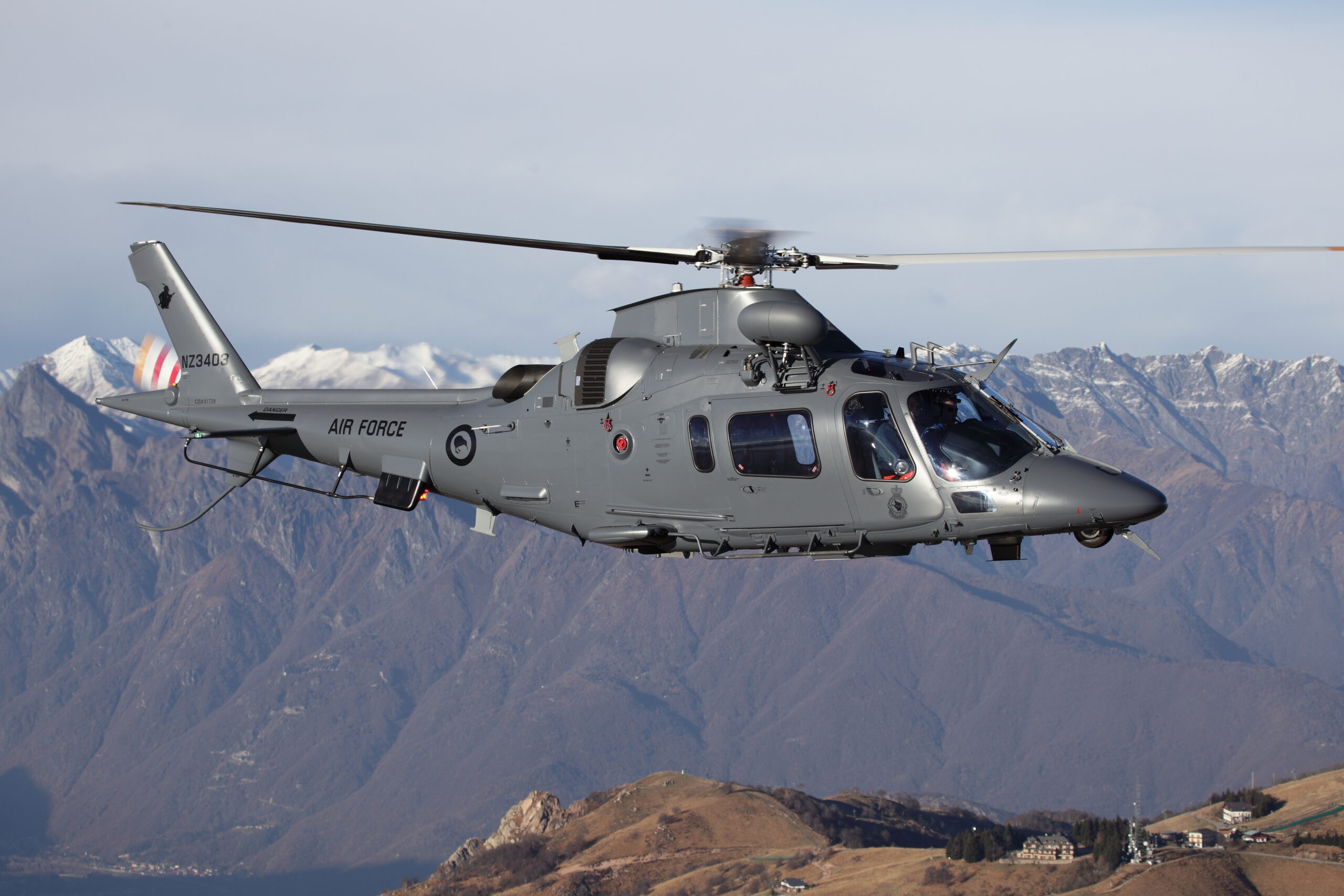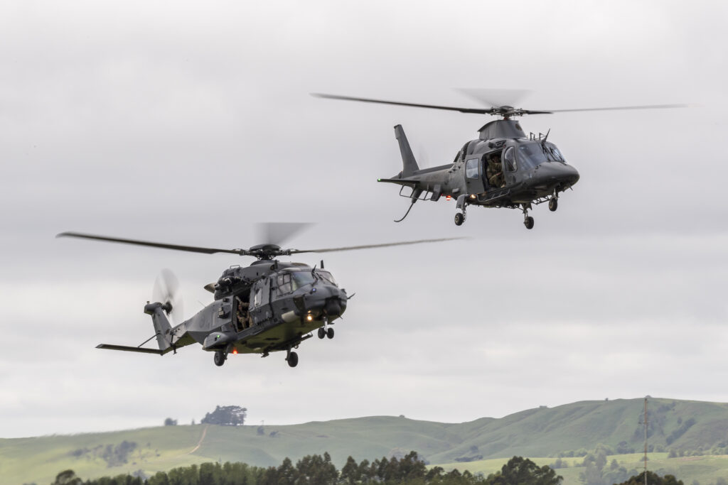 NH90 Helicopter’s depart from Westport during EXERCISE SOUTHERN KATIPO 2017, which is a combined joint and interagency Field Training Exercise focused on developing, exercising and evaluating the New Zealand Defence Force’s ability to project forces anywhere in the South West Pacific and either operate independently or with coalition partners. (NZDF Official Photo)An NH90 and an A109 of the RNZAF together at Wings Over Wairarapa Airshow in 2023. (NZDF Official Photo)One of the RNZAF’s new AgustaWestland A109s, NZ3403, over northern Italy, circa 2010. Agusta-Westland Photo.One of the RNZAF’s new AgustaWestland A109s, NZ3403 over northern Italy, circa 2010. Agusta-Westland Photo. One of the RNZAF’s new AgustaWestland A109s, NZ3403 over northern Italy, circa 2010. Agusta-Westland Photo.The official handover of the first A109’s at the production and flight test facility in Vergiate, north of Milan, Ialy. The group from left to right: SQNLDR Chris Moody, FLTLT Wayne Thomas, WGCDR Patch Nelson, SQNLDR Adam Death, AugustWestland CEO Bruno Spagnolini, F/S Dale Cox and W/O ‘Mario’ Marteletti.